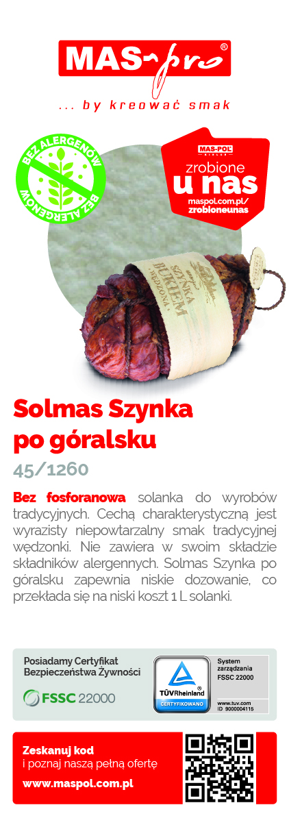 Solmas Szynka po góralsku zapewnia niskie dozowanie, co przekłada się na niski koszt 1 L solanki.